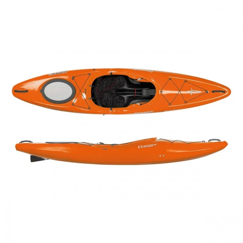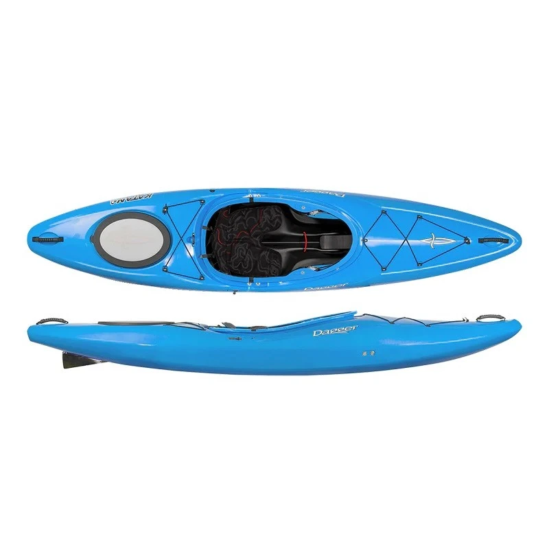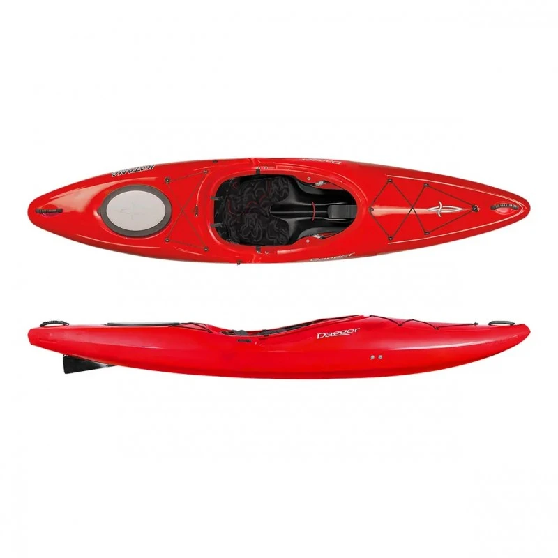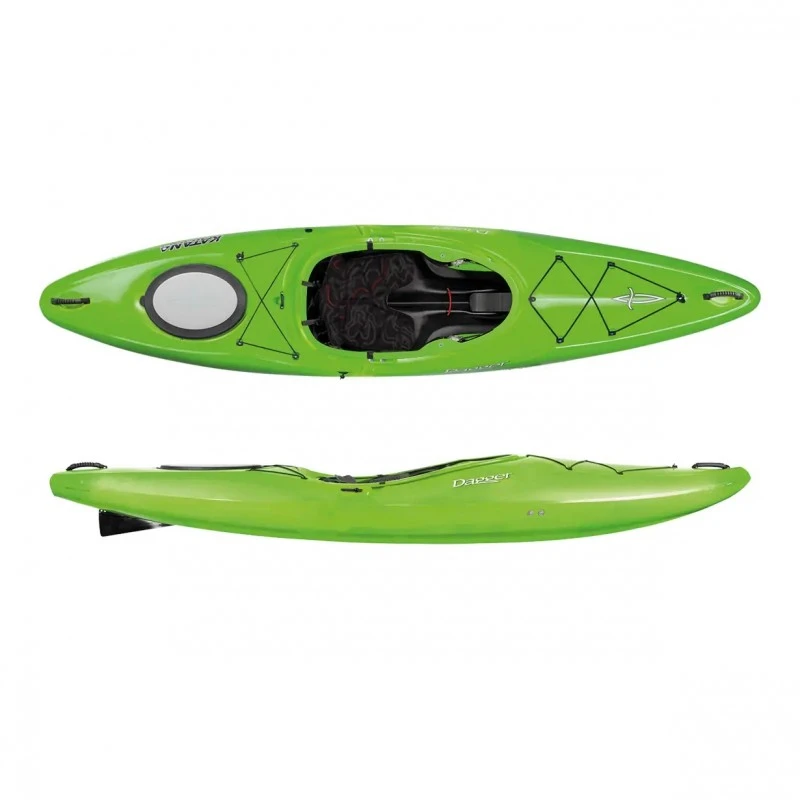 A crossover kayak that truly excels in any water, the Katana was designed to inspire confidence in the paddler with a balanced rocker profile for speed in the flats and maneuverability in whitewater. The hull is designed for initial stability while the beveled and flared side-walls create secondary stability. The rounded stern deck shape, taken from the Mamba design, sheds water easily, making it forgiving in moving water. The Katana also offers a more spacious cockpit than traditional whitewater designs for a less confining feeling. Reinforced hatches and a removeable bow bulkhead offer unparalleled gear storage, while the drop skeg add speed and stability.