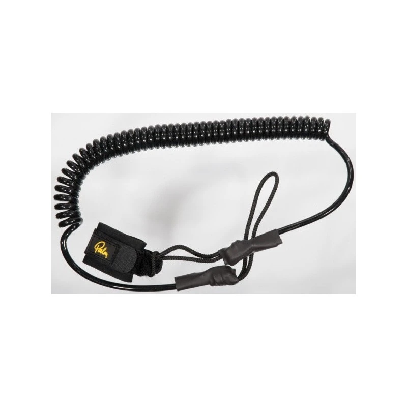A smart coiled paddle leash from Palm. It features a tough coiled surf board style leash, with a hook and loop paddle attachment at one end, and loop for attaching to deck lines or ‘D’ ring fittings.